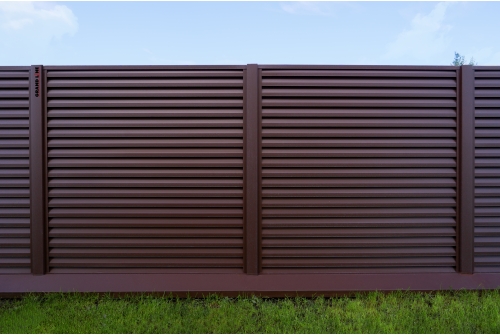 Забор Жалюзи — это секционное ограждение с необычным дизайном. Элементы выполнены из оцинкованной стали с полимерным покрытием.