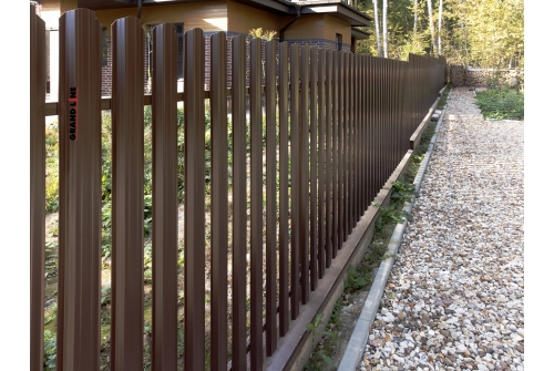 Металлический штакетник — это тип ограждения, состоящий из металлических панелей шириной 100–128 мм и имеющих различные варианты профиля.