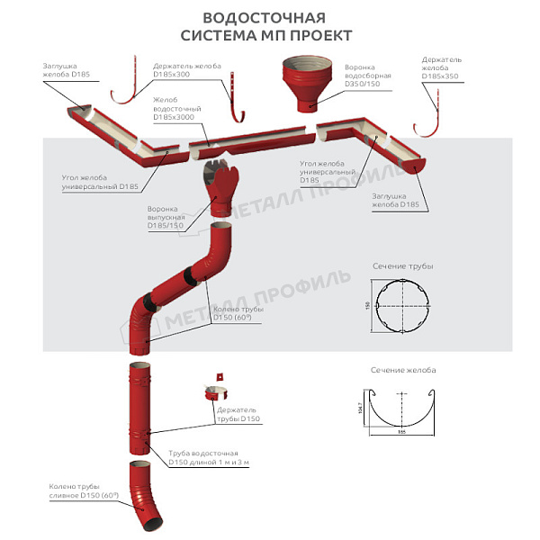 Желоб водосточный Металл Профиль ПРОЕКТ D185х3000 Ral 7024